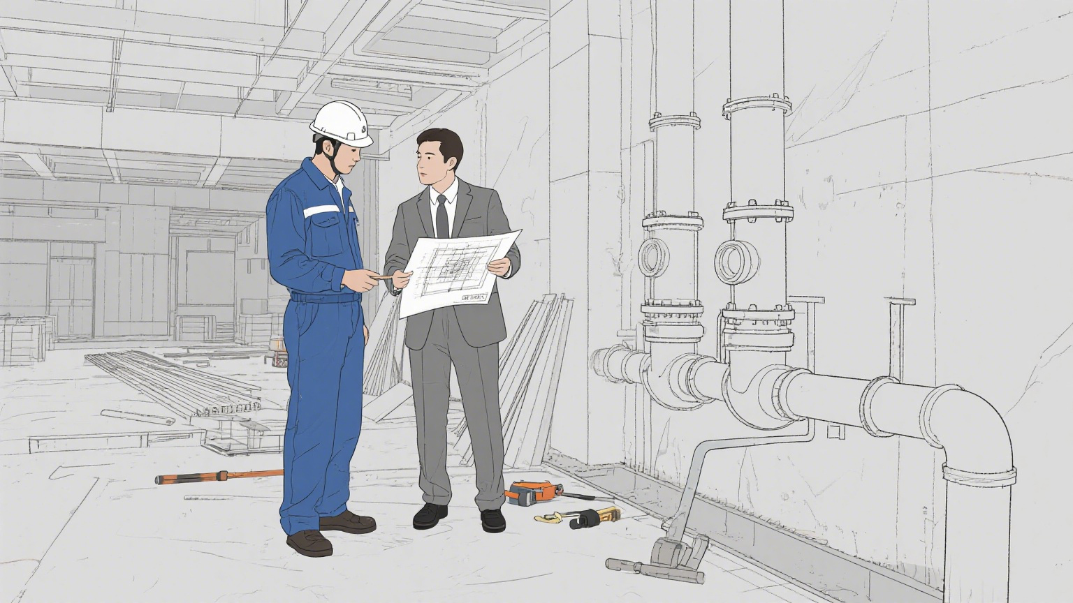 (1)看设计总图时要审核总设计用水量是否配合。以及当地的平均水压与选用的管径是否合适。以及水质的洁净程度。要考虑水垢积聚减小管道流量的发生。所以进水总管应在总用水量基础上加大一级管道。要核对管道与其他管道或建筑物有无影响和妨碍施工。是否需要改道。